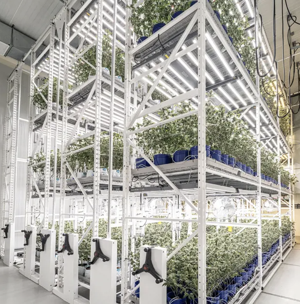 GREENRAK® 2.0 mobile vertical grow rack systems cut back space-wasting aisles.
